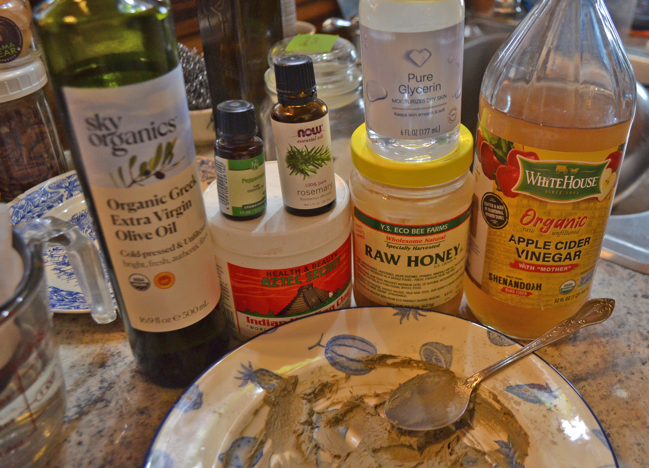 FIRST MISTAKE IN PHOTO – I forgot about not using metal spoon! You are not supposed to use metal it will affect the charge of the bentonite clay. Wood spoon only.