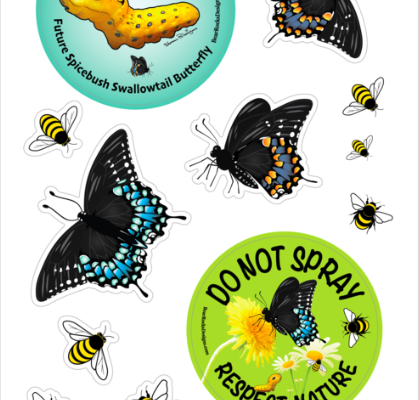 Meet Sully the Caterpillar. He's a good reason for clean living. He will turn into a spicebush swallowtail butterfly and grace us with his beauty, if we don't spray him. :) All new drawings of butterflies and bees by Shanna B.